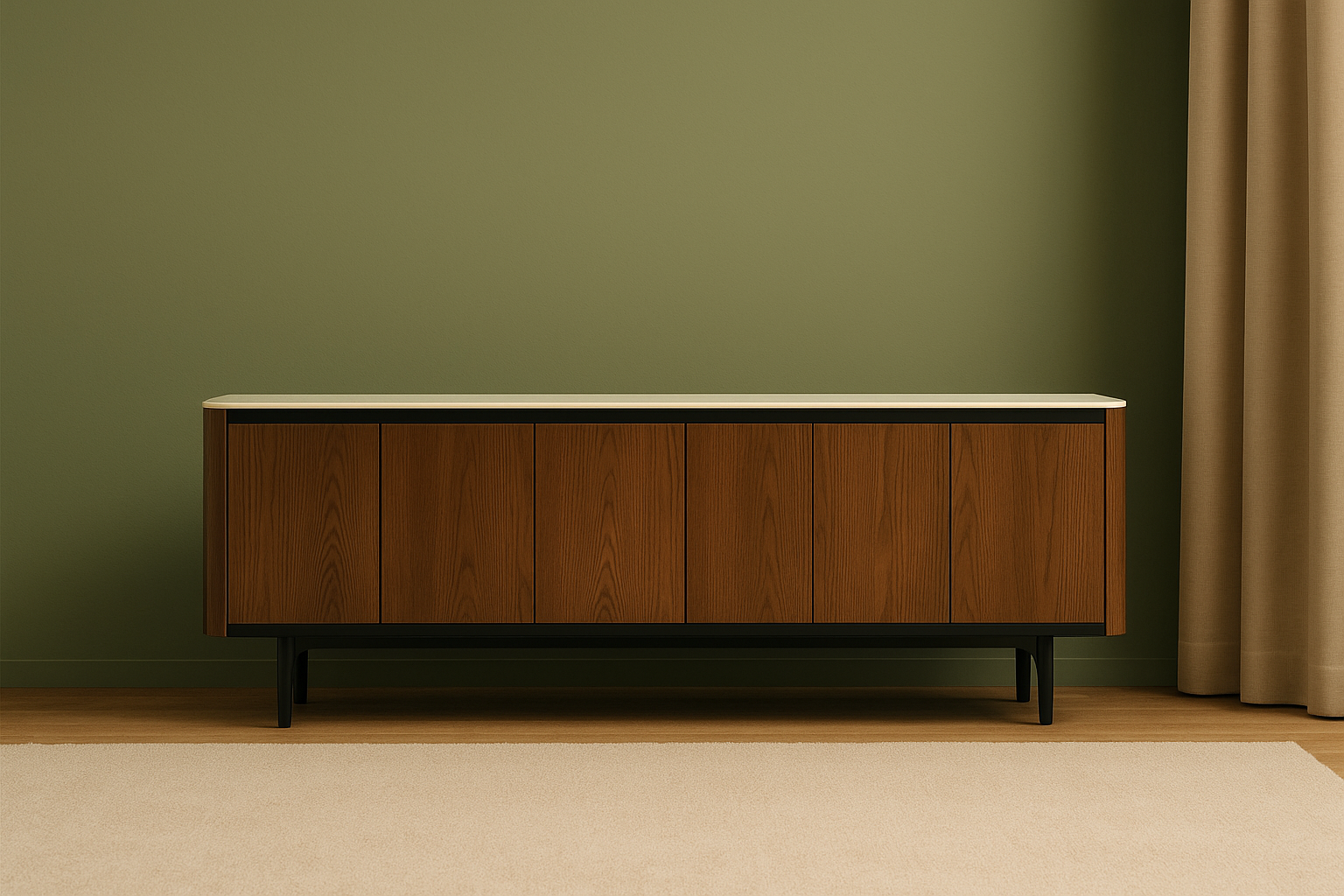 The Arpietto Console blends curved elegance with sleek minimalism, featuring a metal frame, warm ash wood, and a white Vietnam marble top. A timeless piece for modern interiors.